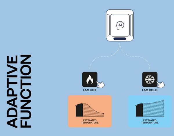 Inteligentne dostosowanie działania klimatyzacji w oparciu o preferencje użytkownika i bieżące lub przewidywane warunki pogodowe. Technologia Indel B Pre-Adaptive (tryb inteligentny) dostosowuje działanie klimatyzacji , ucząc się nawyków użytkownika i optymalizując wydajność w odniesieniu do warunków pogodowych w bieżącej lokalizacji lub przewidywanych warunków pogodowych w określonym przyszłym miejscu docelowym.