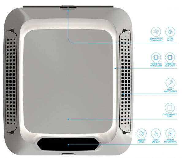 Konfigurowalny panel można również łatwo zdjąć w razie potrzeby dzięki praktycznemu systemowi magnesów. Dyfuzorem można sterować za pomocą ekranu dotykowego lub smartfona przez Bluetooth i Wi-Fi.
